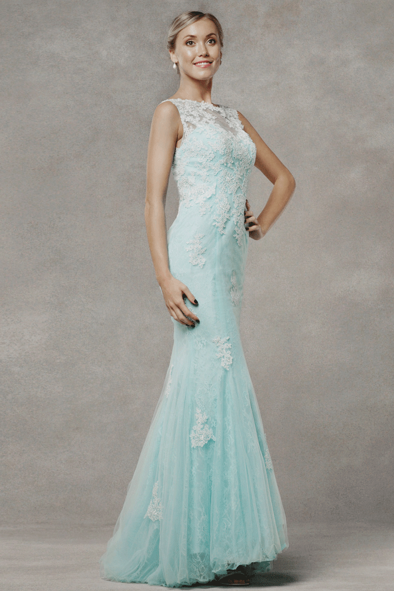 Indulge in timeless elegance with our enchanting evening dress—a full lace and tulle mermaid gown designed to captivate. The sheer high bateau scalloped neckline adds a touch of sophistication, enhancing the dress’s allure. Embrace the grace and allure of this meticulously crafted gown, perfect for making a stunning entrance at any evening event.