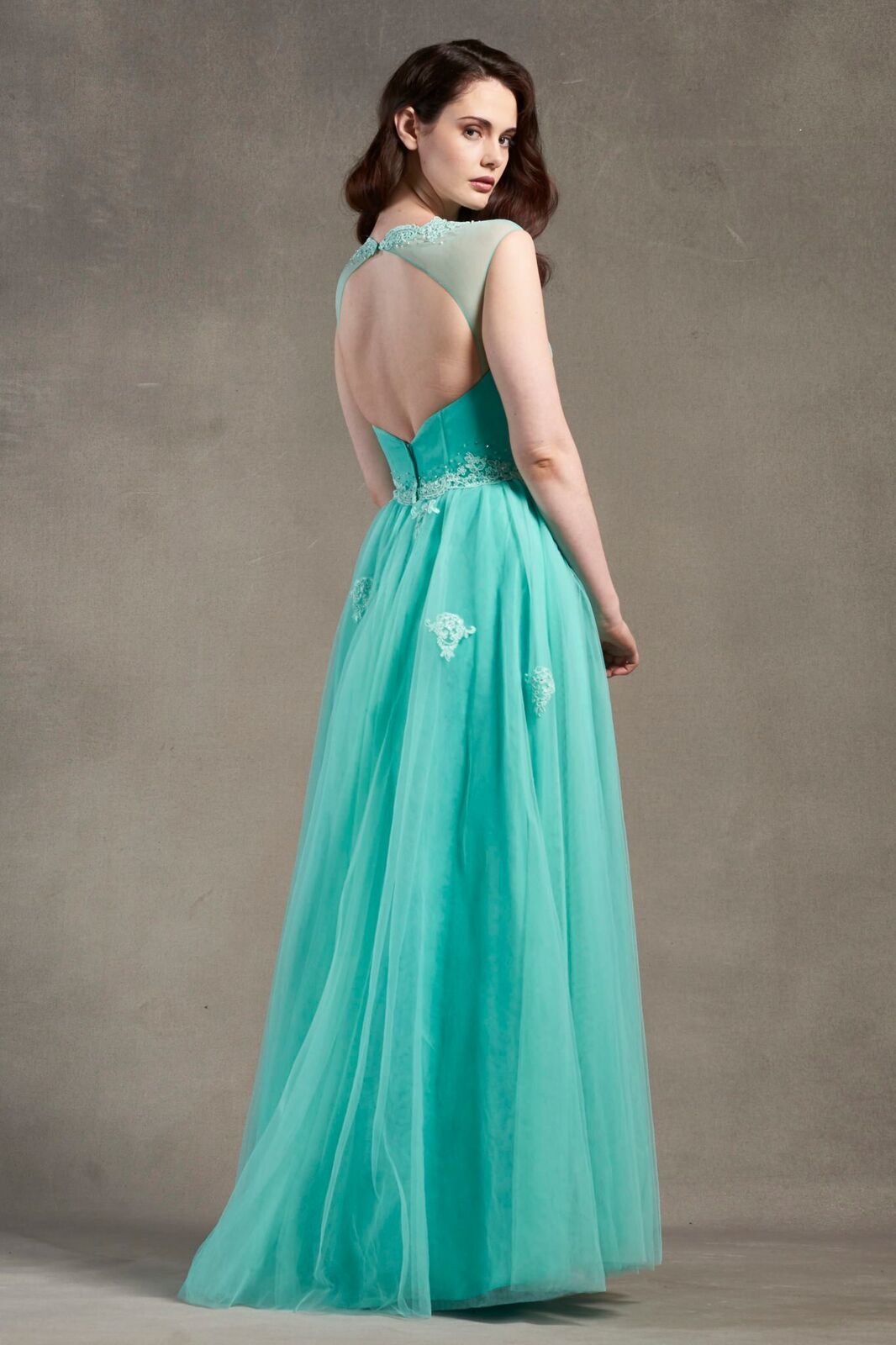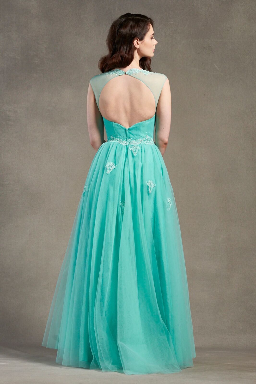 Elegance meets allure in our Lace Applique Tulle A-line Evening Gown. This enchanting dress features delicate lace appliques on ethereal tulle, creating a mesmerizing A-line silhouette. The keyhole neckline at the back adds a touch of sophistication, making it the perfect choice for an unforgettable evening affair.